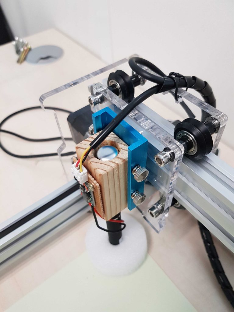 Then, you need to mechanically adapt the pointer to the machine, with a piece of wood or with a 3D printed part if you have more time to spend.