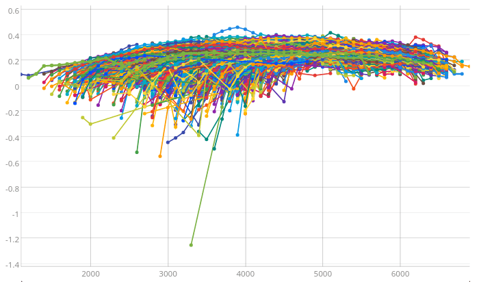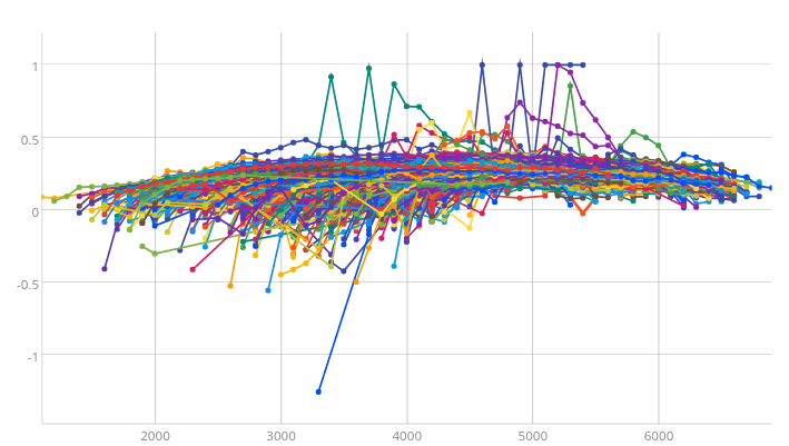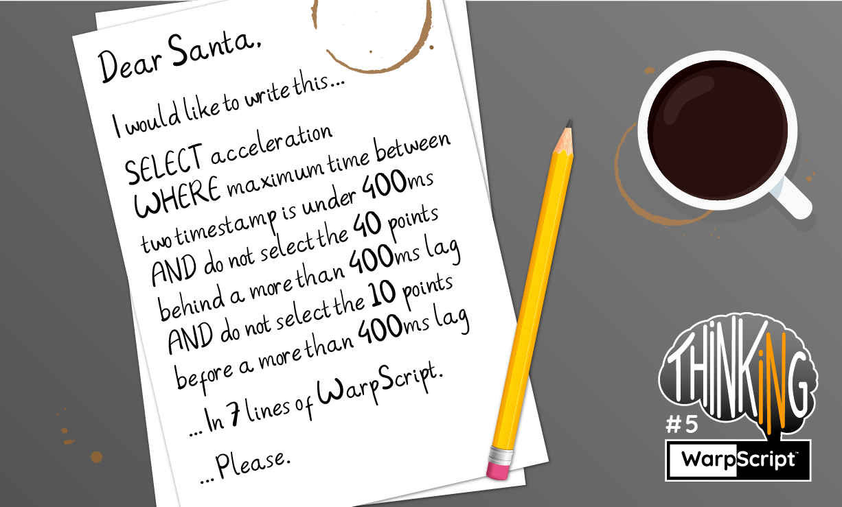 $rpmGTS $gearSelectorGTS + $throttleSelectorGTS + $noLagGTS + 'rpm' STOREThis method is the most efficient way I found in WarpScript to remove invalid data. Applied to 2500 cars, the acceleration diagram (max acceleration vs rpm for a given gear, full throttle) is now clean: