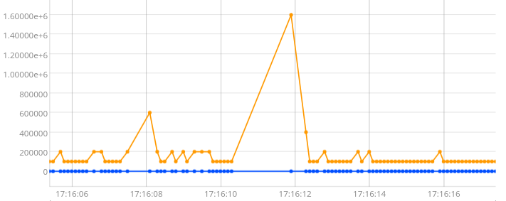 Around 17:16:12, the 1.5 lag introduces an incorrect value. Moreover, since the software that produced the data applied a low pass filter, neighboring data points are also affected.