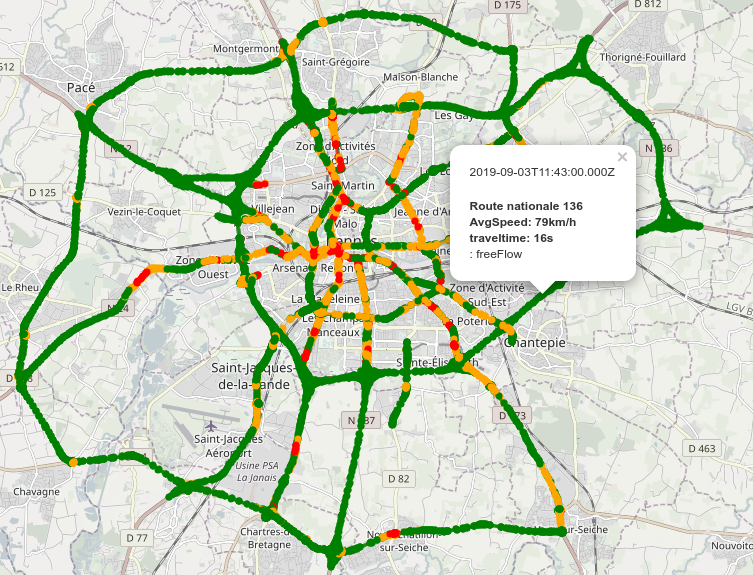 Thanks to Open Data, we can fetch traffic data coming from Rennes. The dataset is available here.