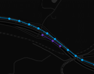 You can see that there is some weird things in the input data: sometimes, the car is on the road, sometimes it is on a parallel road that is not part of the given geoshape. Fine. You have to do with that, do not try to fix input data.